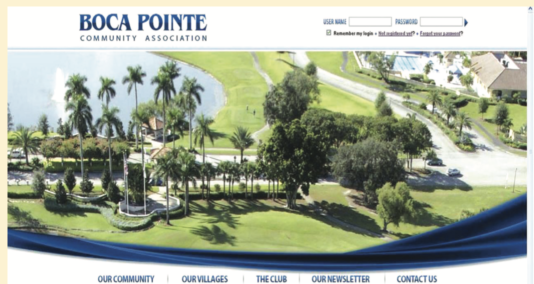If you have never registered on the Community Association web site, call Access Control for our “Community Code,” then go to http://www.bocapointe.com. Click on the “Not registered yet?” link right under the log in box.