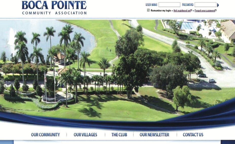 If you have never registered on the Community Association web site, call Access Control for our “Community Code,” then go to http://www.bocapointe.com. Click on the “Not registered yet?” link right under the log in box.